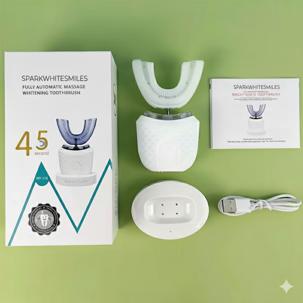 Unlike traditional toothbrushes, SparkWhiteSmiles uses advanced sonic technology and a 360° U-shaped mouthpiece to clean all teeth at once. It’s faster, smarter, and clinically proven to improve oral hygiene and whitening results.